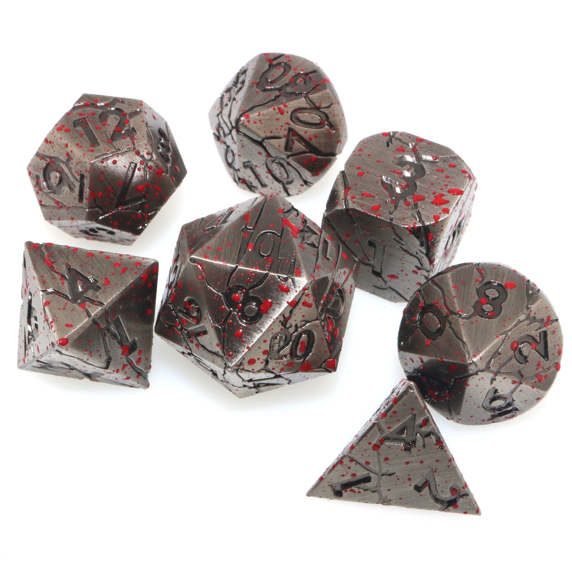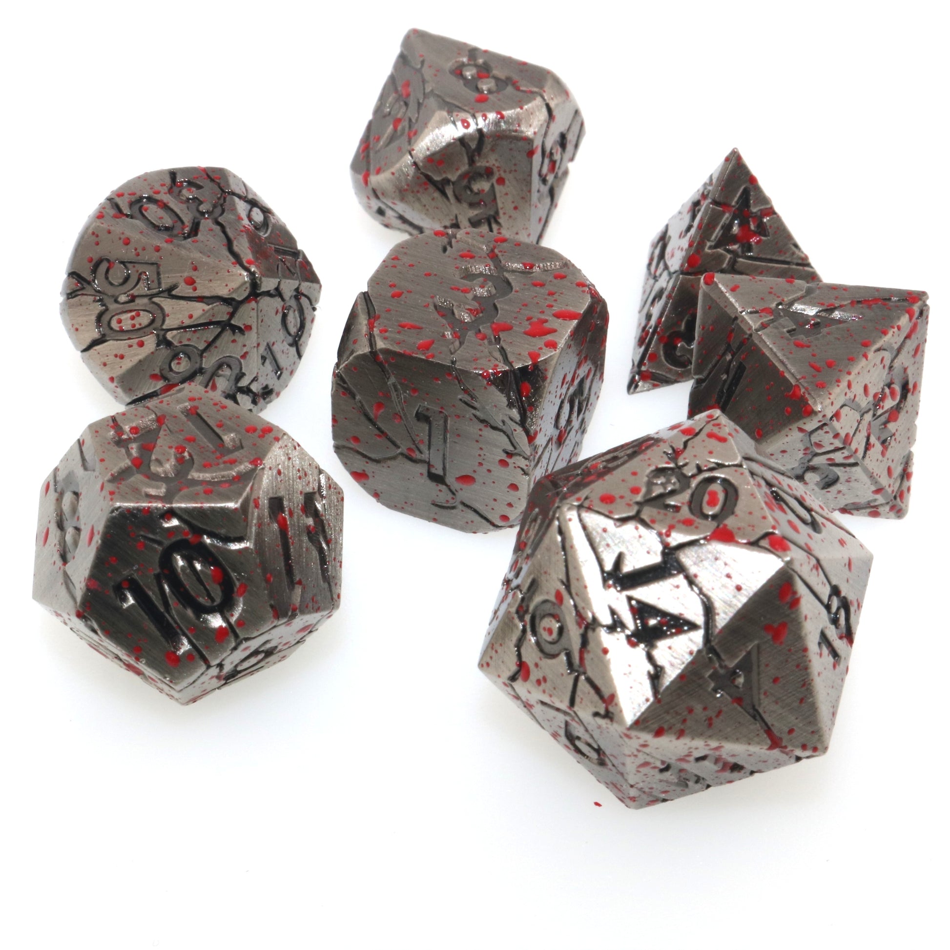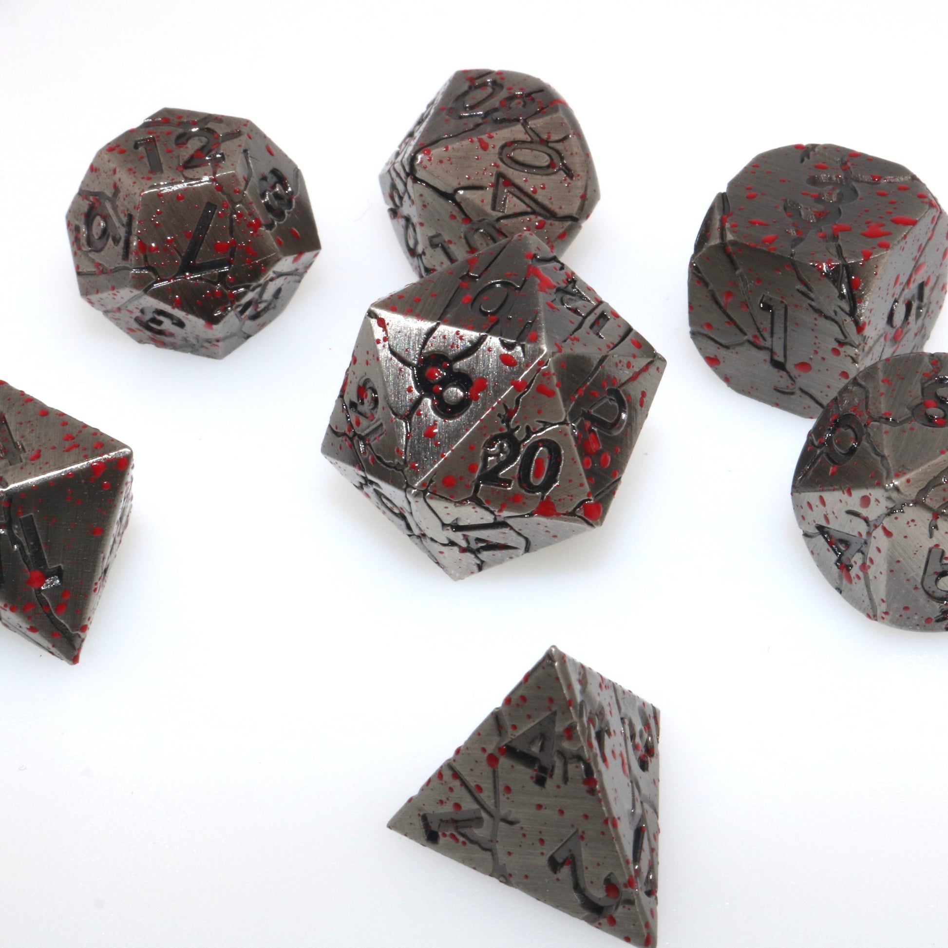 These dice have felled a giant, and they buzz with the excitement of another fight. Use these metal dice to topple the enemies in your way.
