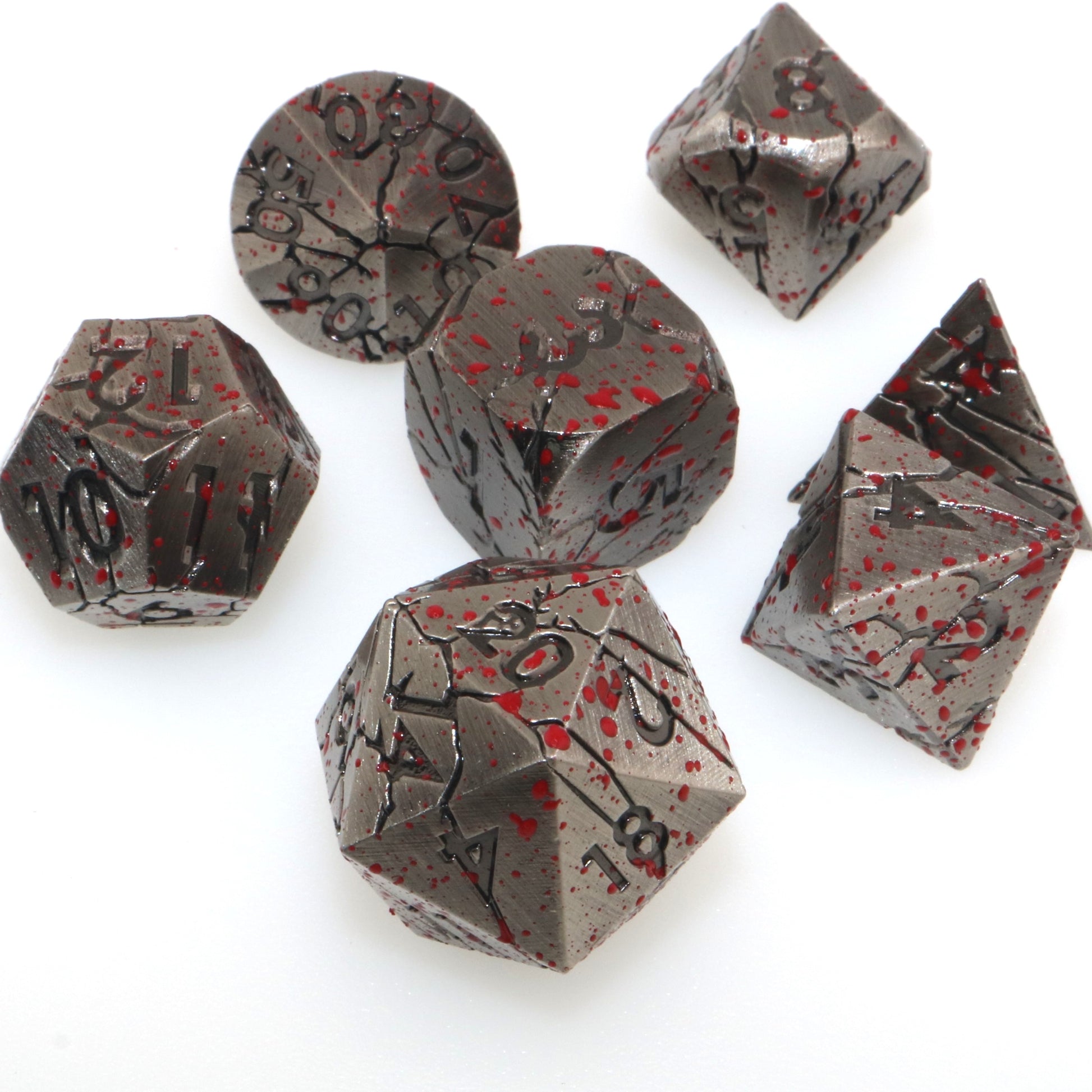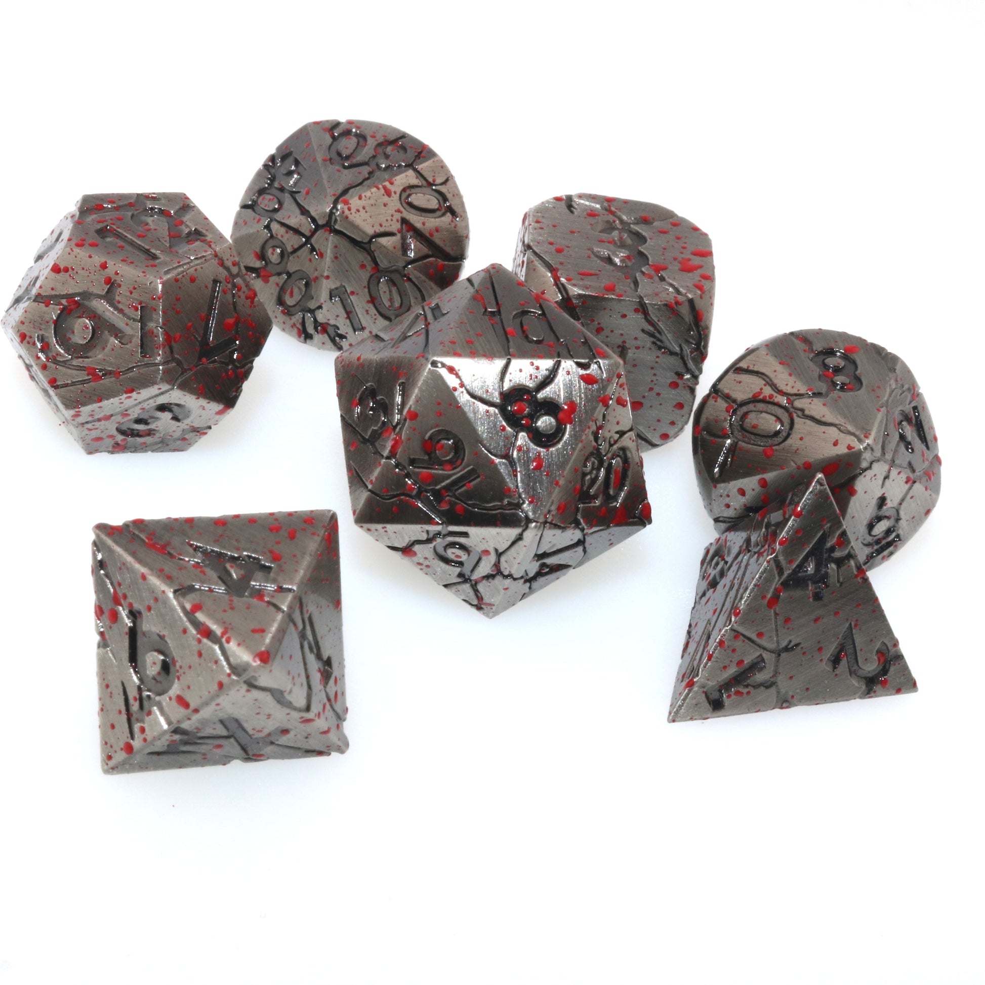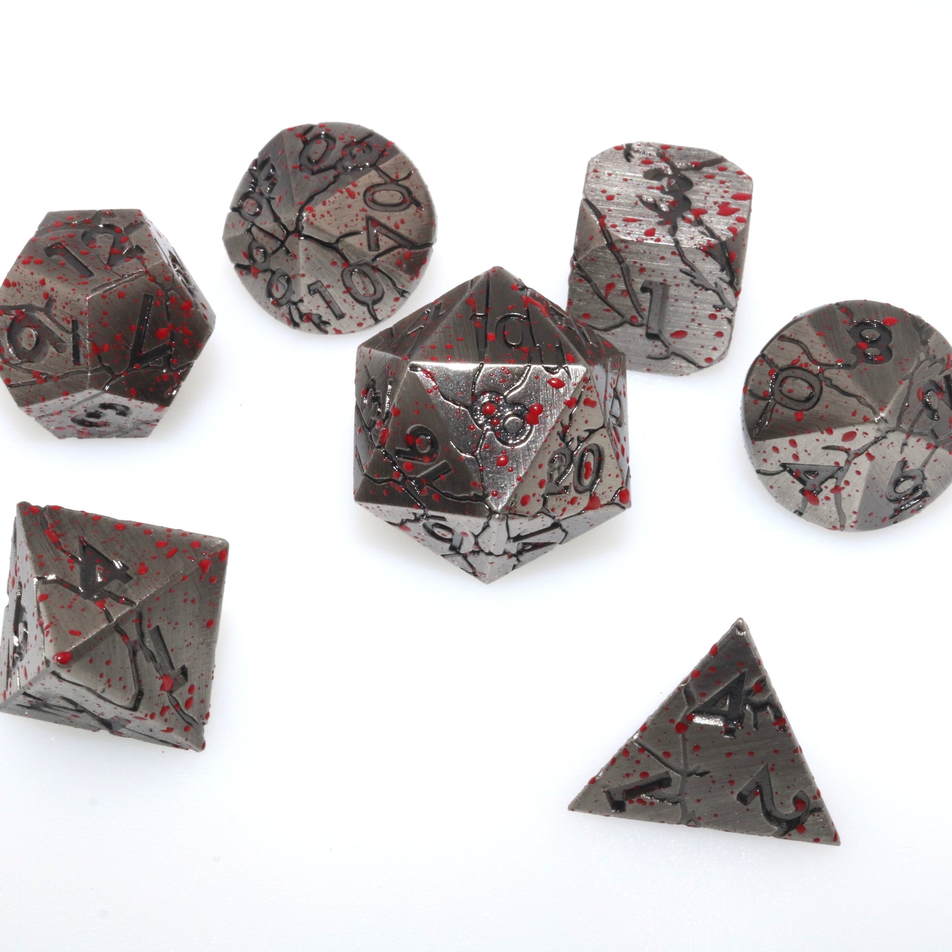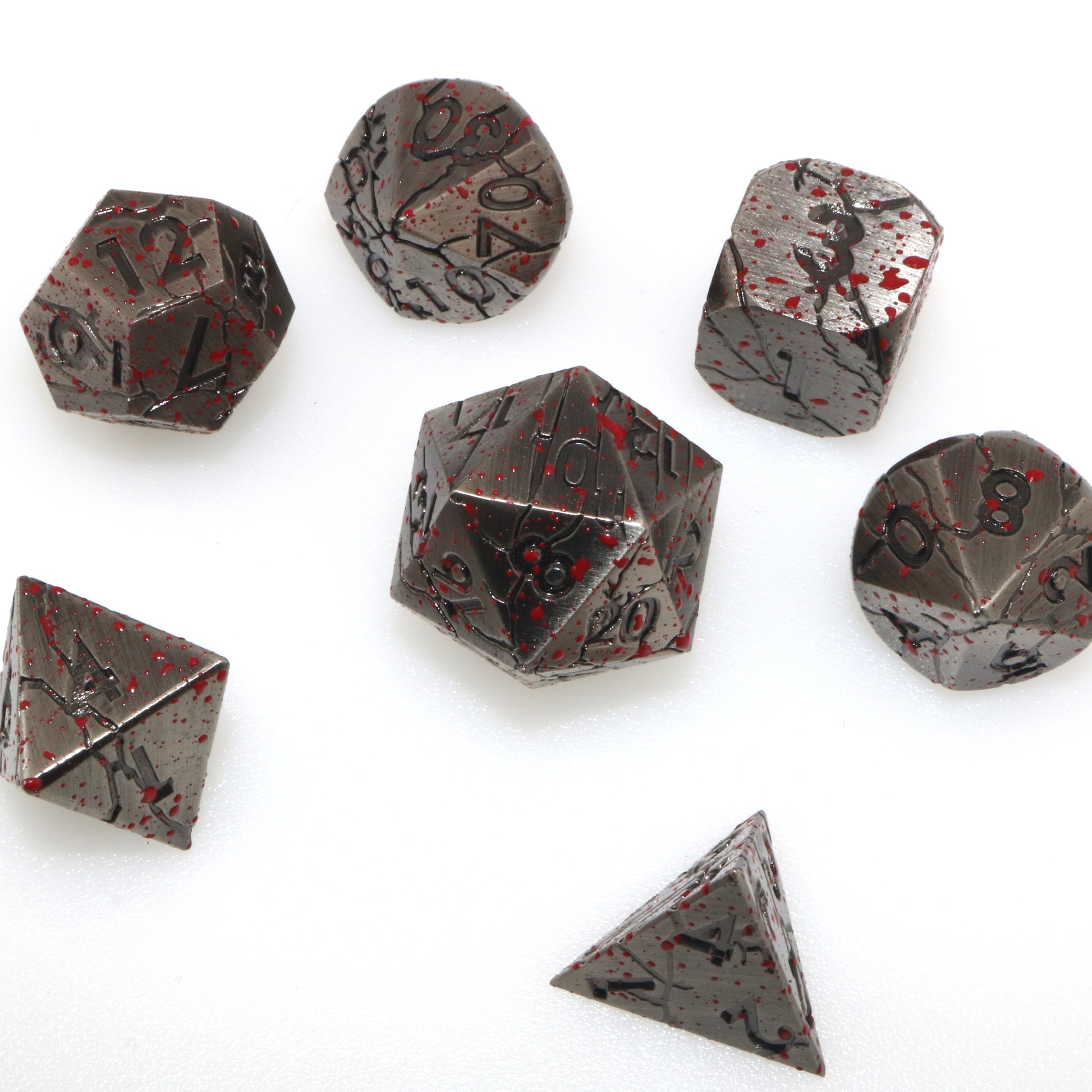 These dice have felled a giant, and they buzz with the excitement of another fight. Use these metal dice to topple the enemies in your way.