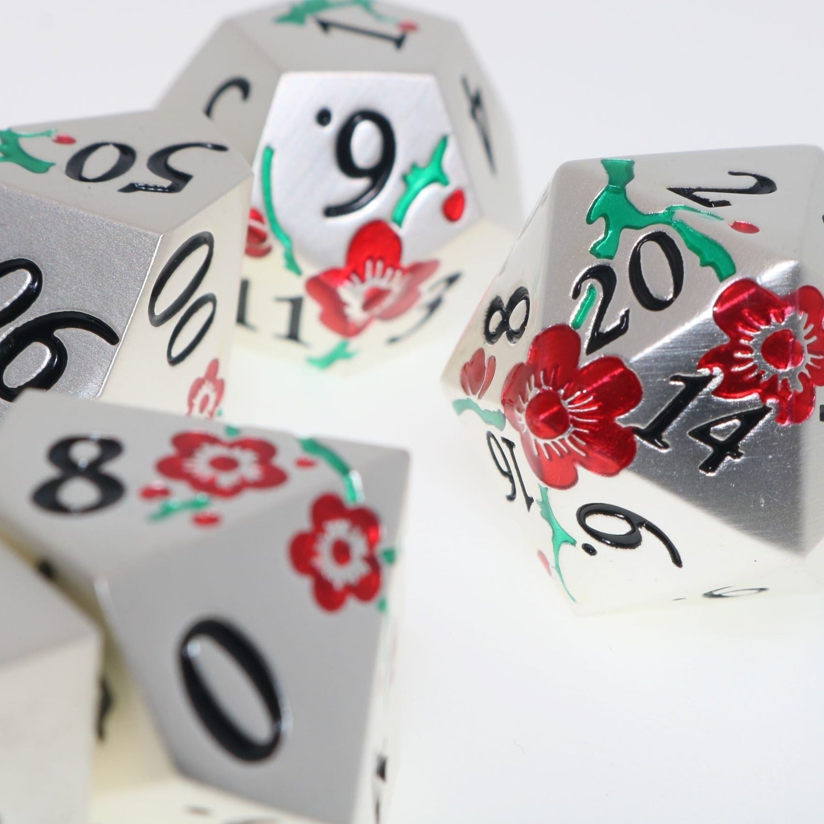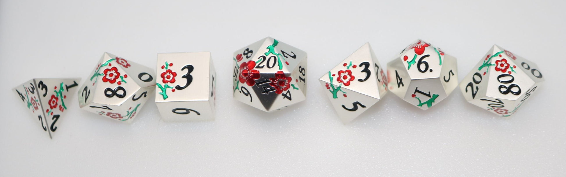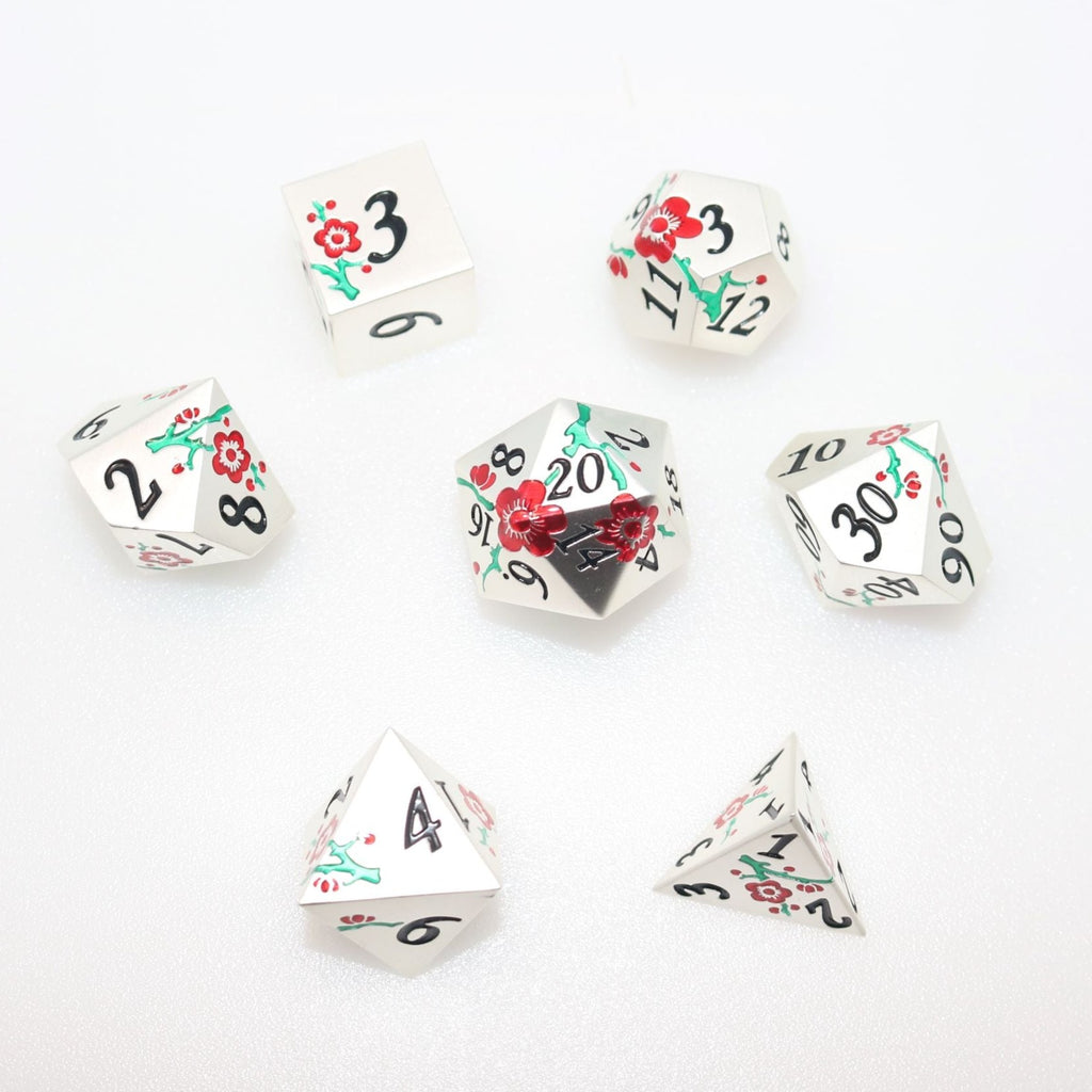 For those who need an elegant, delicate touch. These dice have flower designs flowing from face to face.