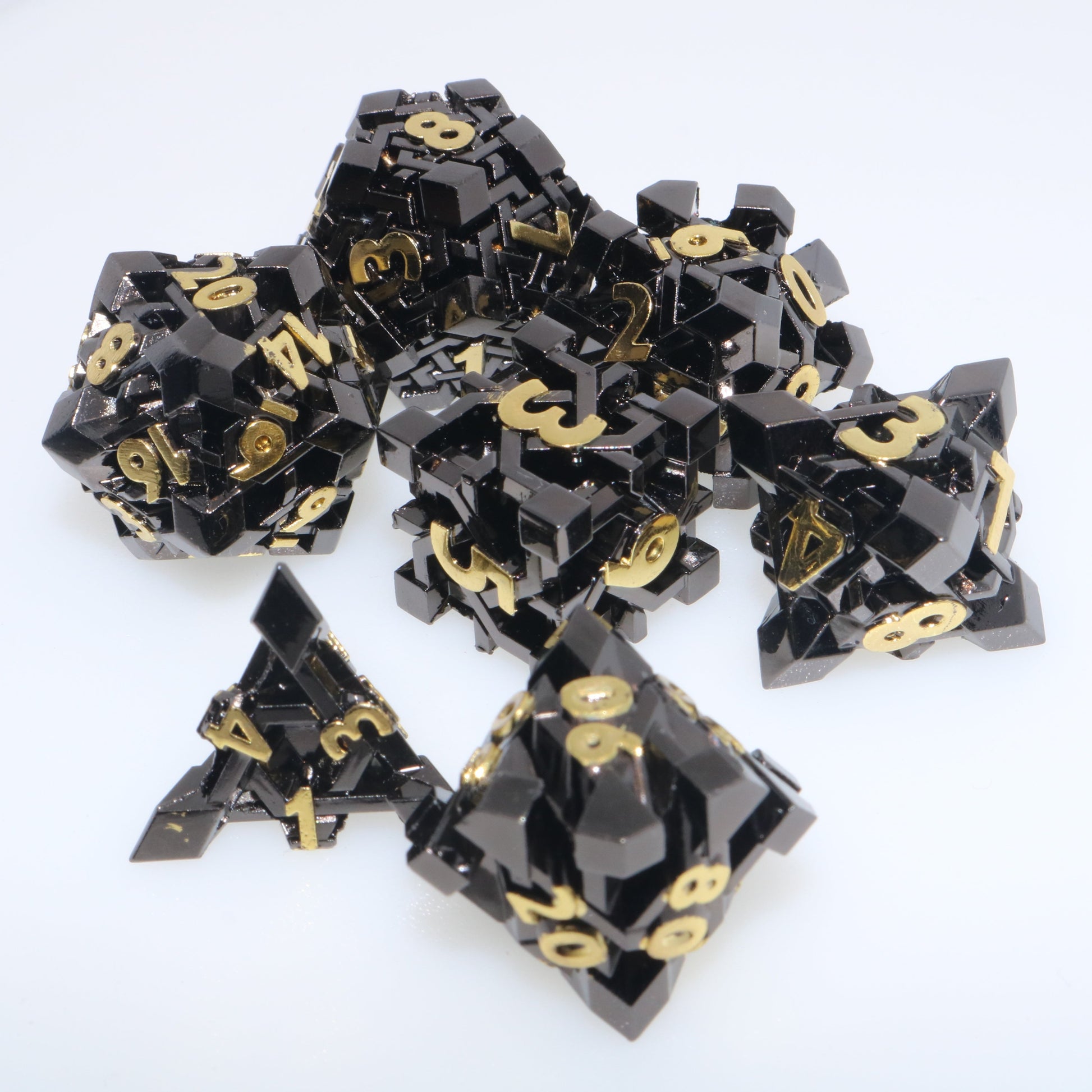 These heavy metal dice have an art deco architectural design. They make an unmovable statement.